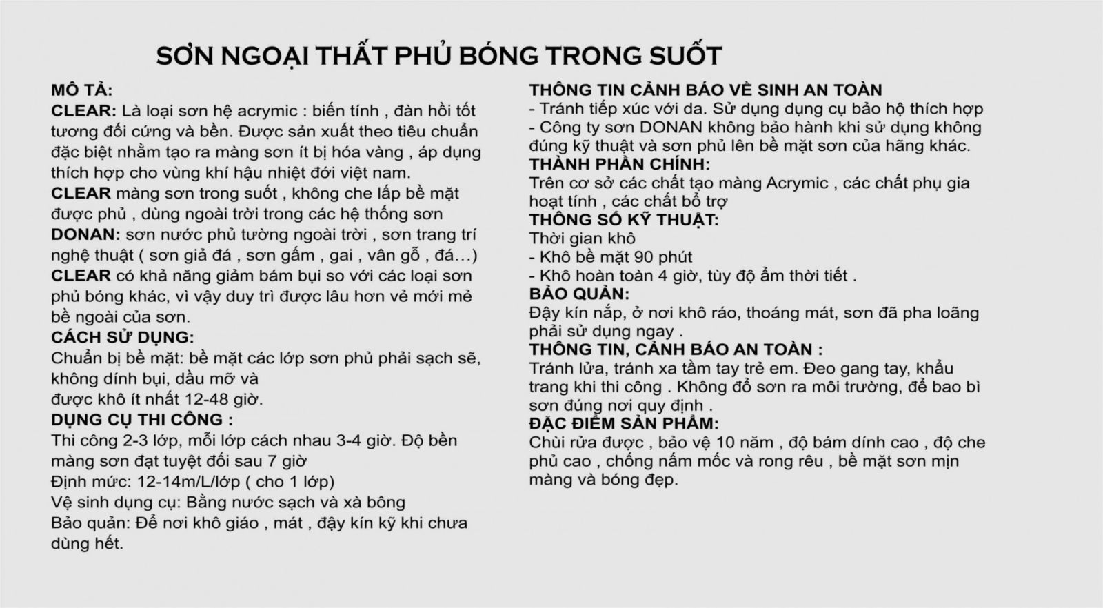Sơn ngoại thất phủ bóng trong suốt 1L